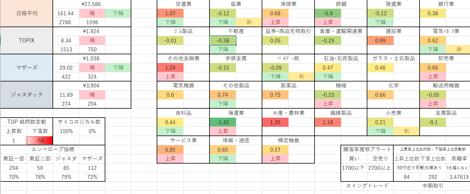 エンベロープ接地銘柄が昨日、大量に増えたのですが