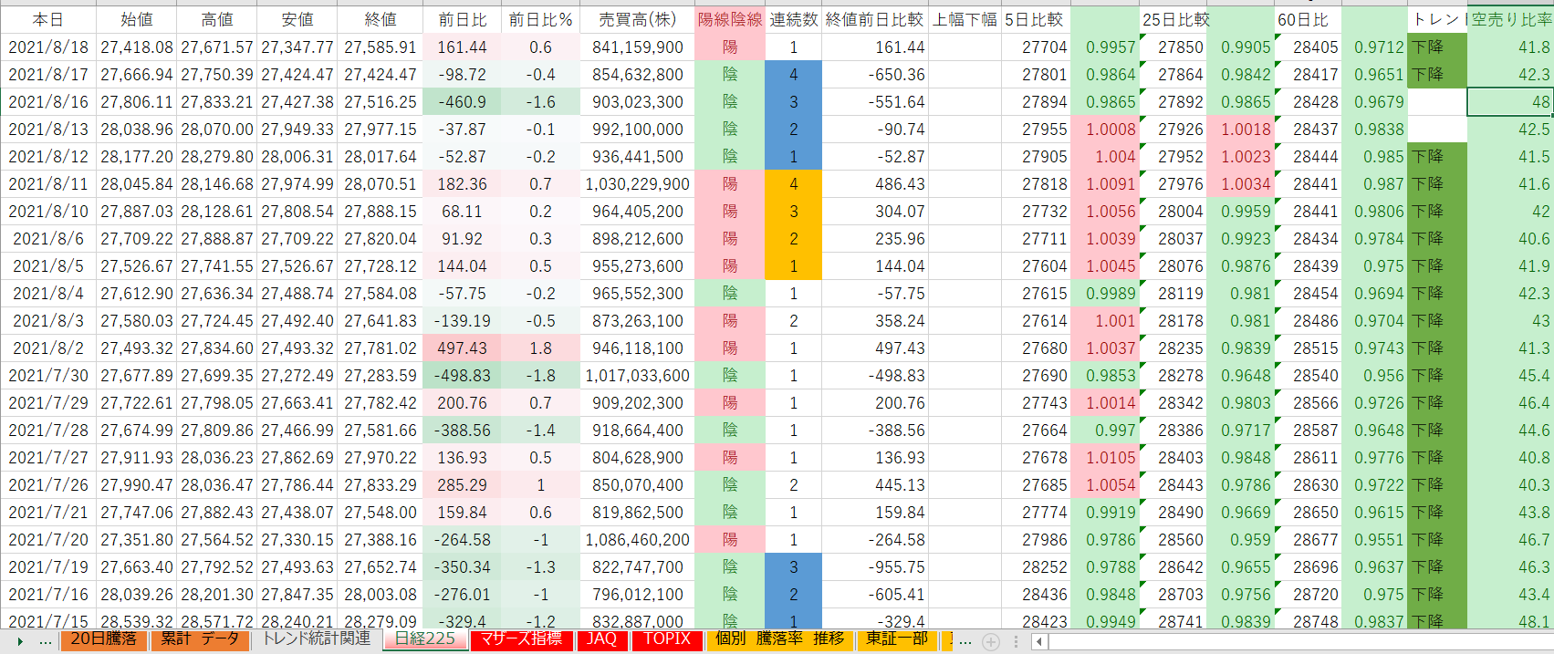 昨日、一日だけ上昇トレンドが下降トレンドを上回ったのですが、一日で逆転しました!