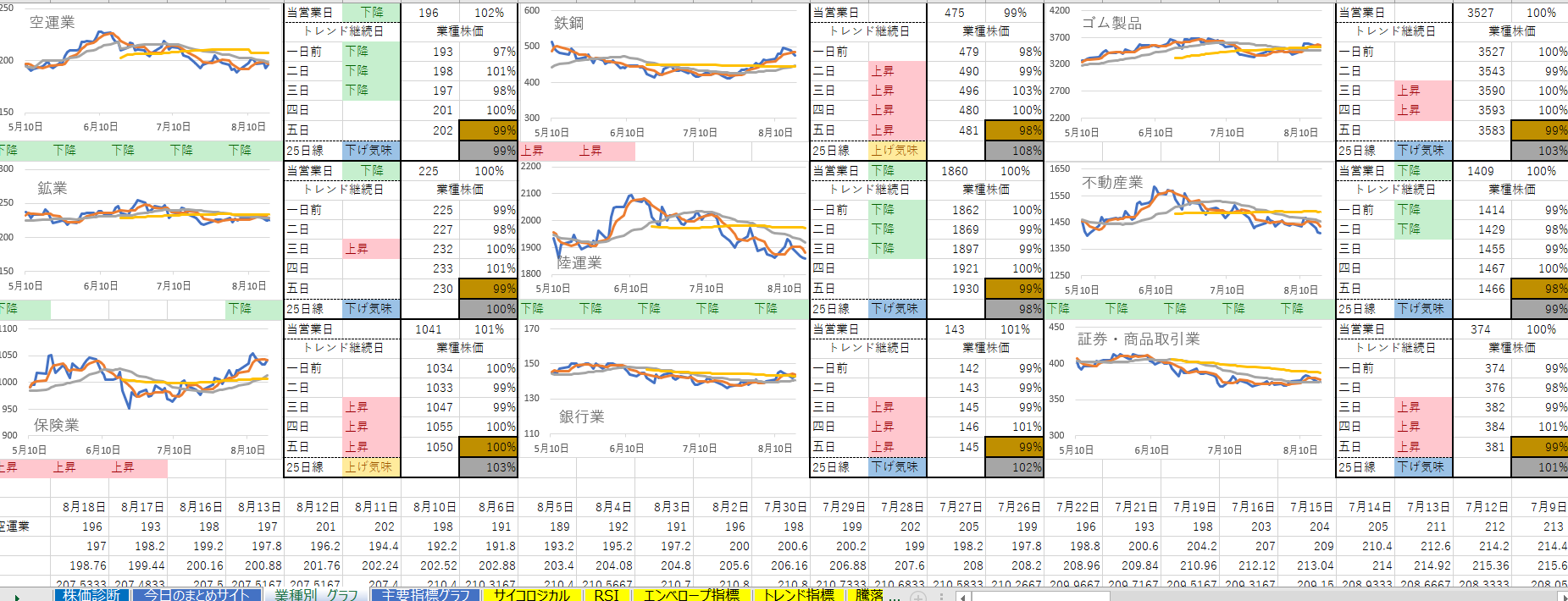 下降トレンドが3業種増えました。