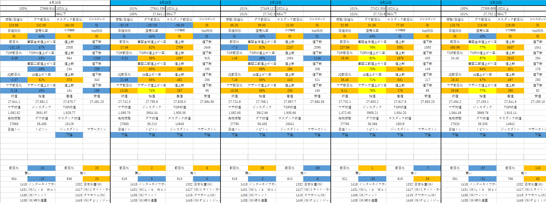 先物とダウとナスダックが併せて値上がり値下がりした日の