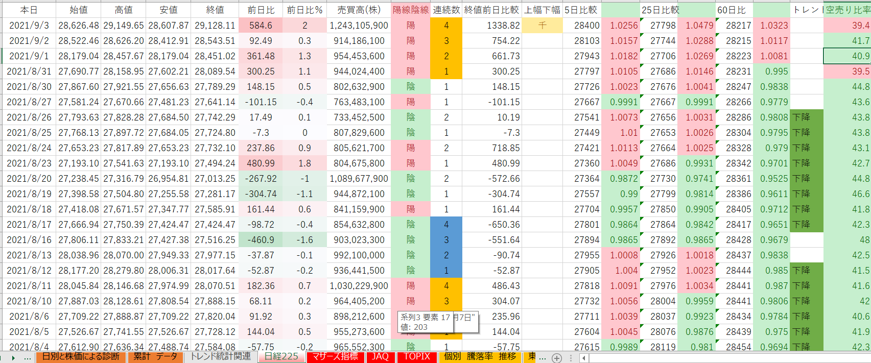 業種に所属する個別銘柄の値上がり数と値下がり数が大事です。