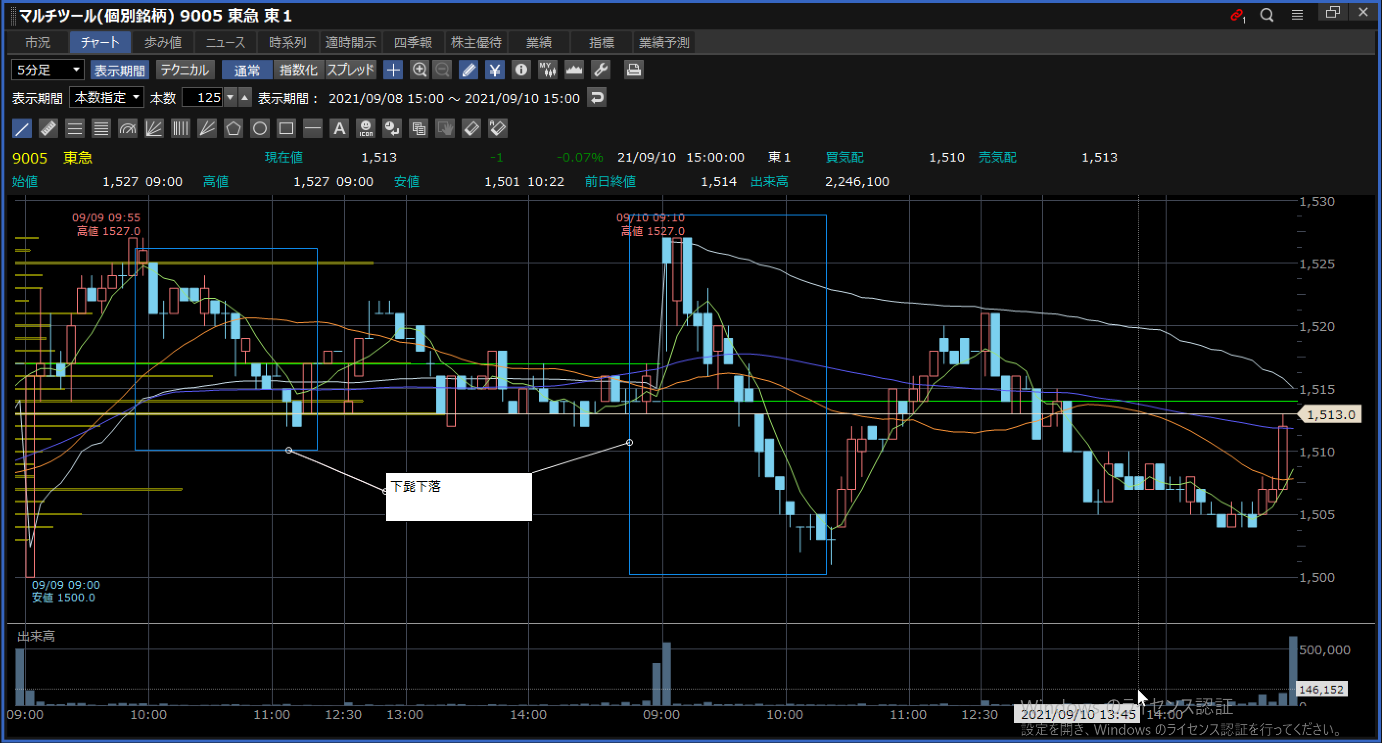下落後の移動平均線との反応を見ながら下髭を待つべき