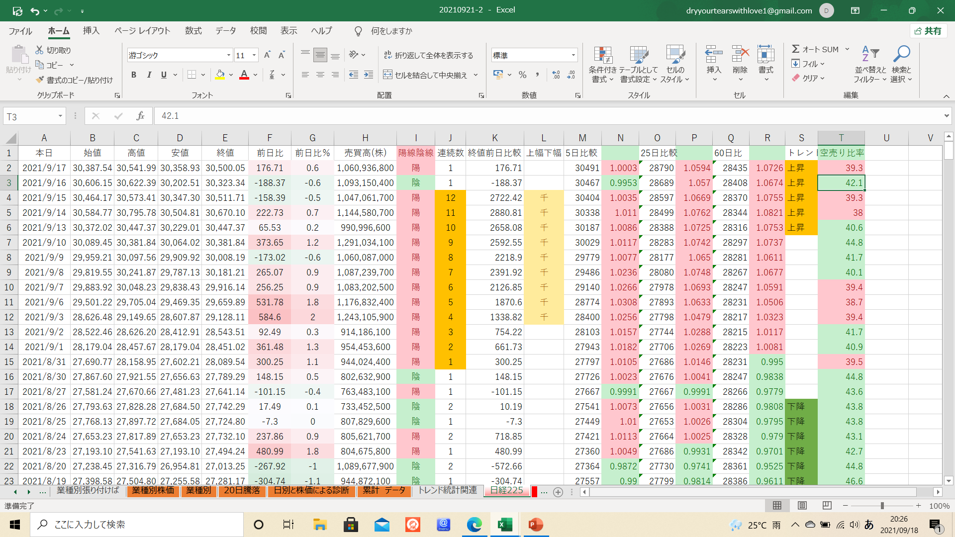 日経平均の移動平均60日線が43日ぶりに終値ベースで上回ってから