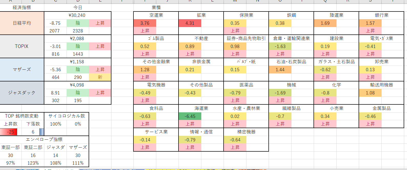 いくつかの業種では上昇トレンドが外れる可能性が出てきました。