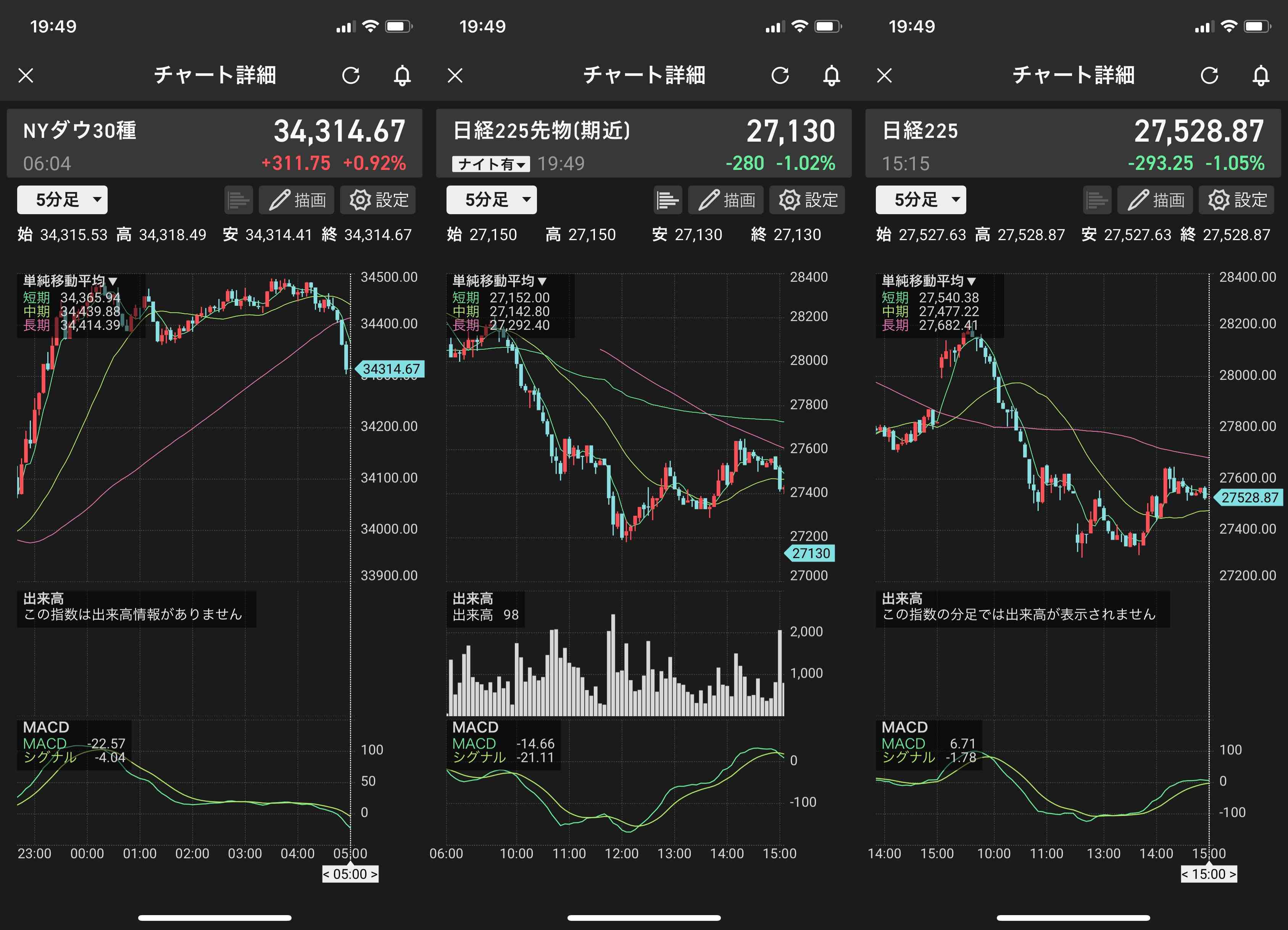 日経平均はチャートで見ると下値2万7500円辺りの支持ゾーンに入ってき