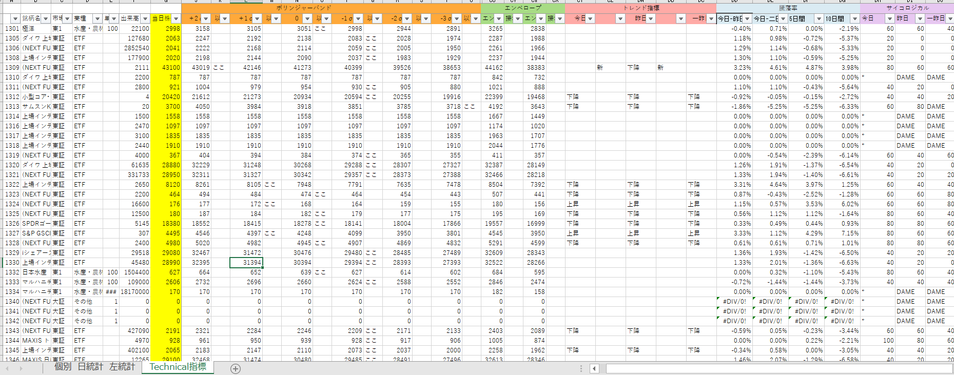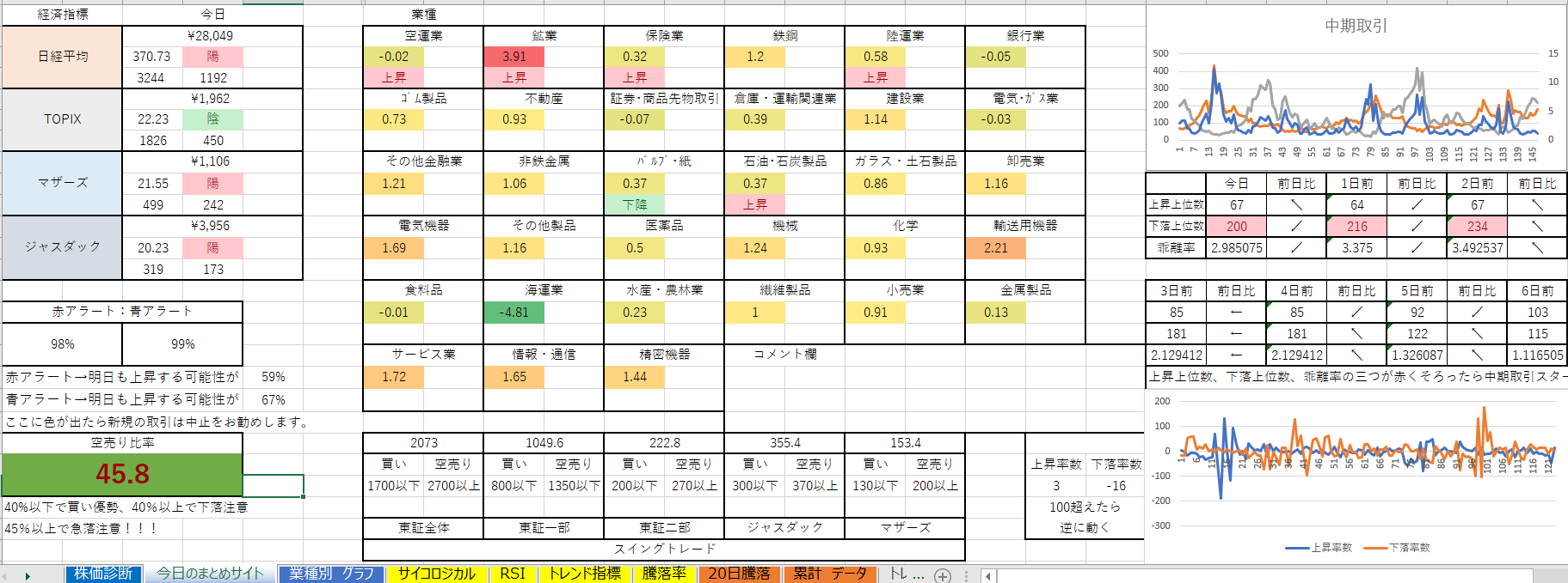 過去1700日間の経済指標、業種、個別銘柄の統計を取りました