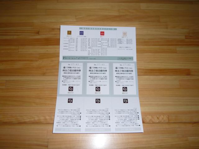 本日(9631)東急レクリエーションの株主優待が到着しました。