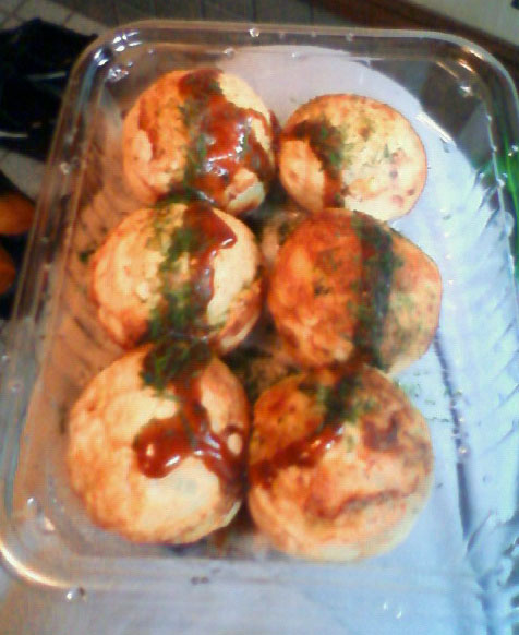 フレンズさんの郷さんに教わった、油の代わりにマヨネーズで焼く、タコヤキ揚げ風もウマウマでしたよー。