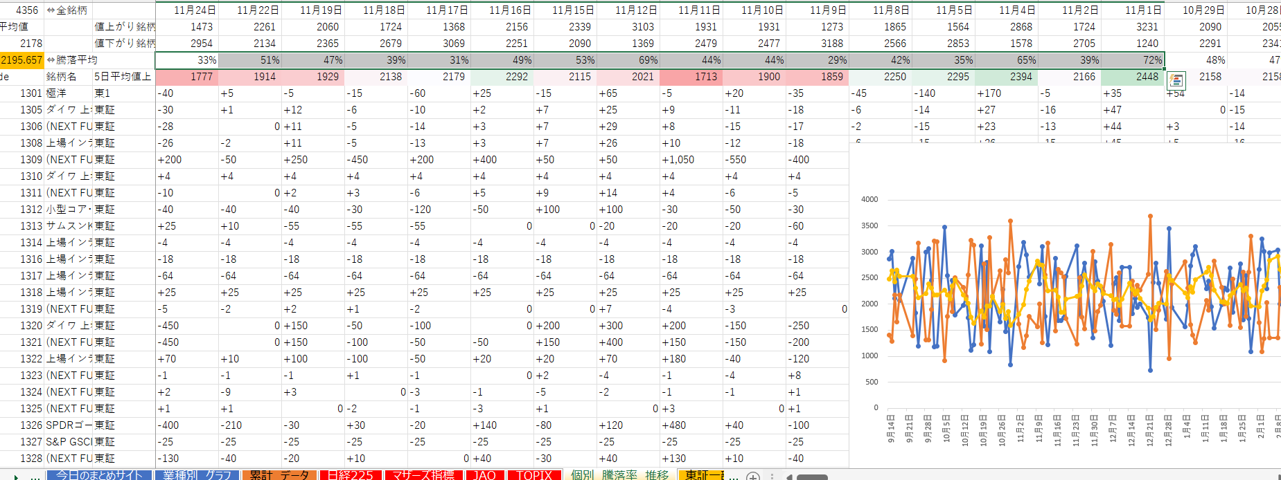 11月中に47%以上に戻すためには、近いうちに値上がり数が多くなる