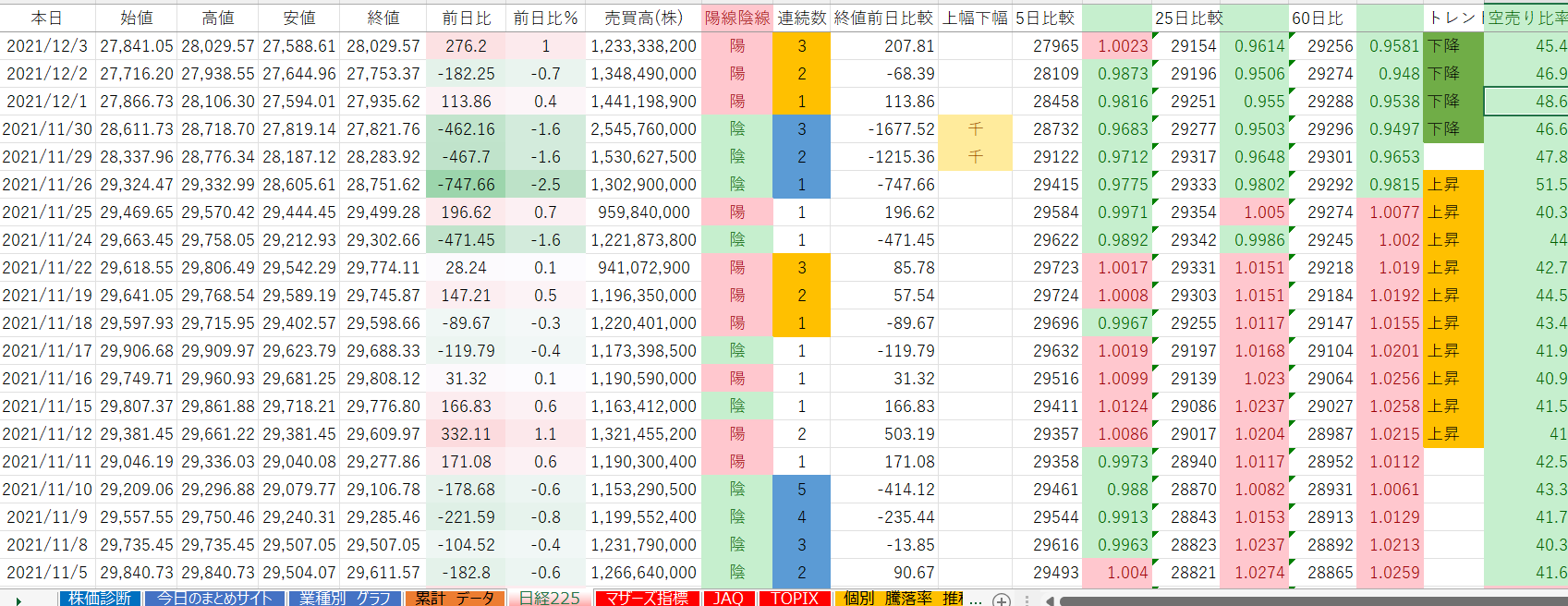 以前の日経平均の反発した時と明日で底が同程度になります。