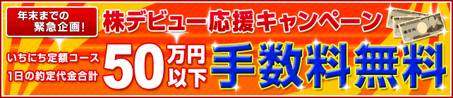 新たに口座を開設した人は通常開設後3ヶ月間までは1日20万円の取引きまでは手数料無料というサービスを通常実施してるんですが、ナント年内に新規口座開設すると1日50万円までの取引きまでが手数料無料になるそうです。(一部除外銘柄あり)。