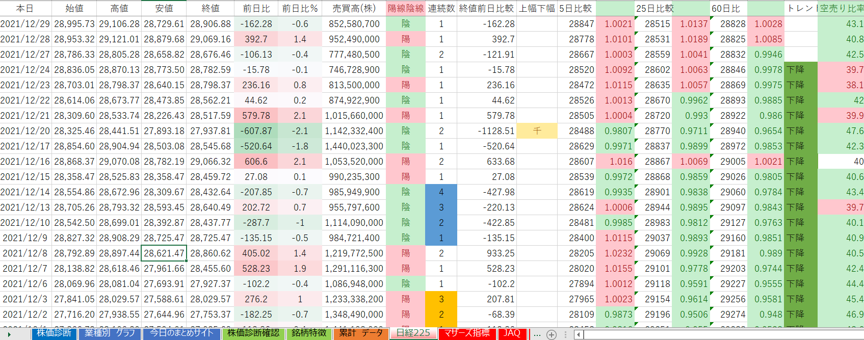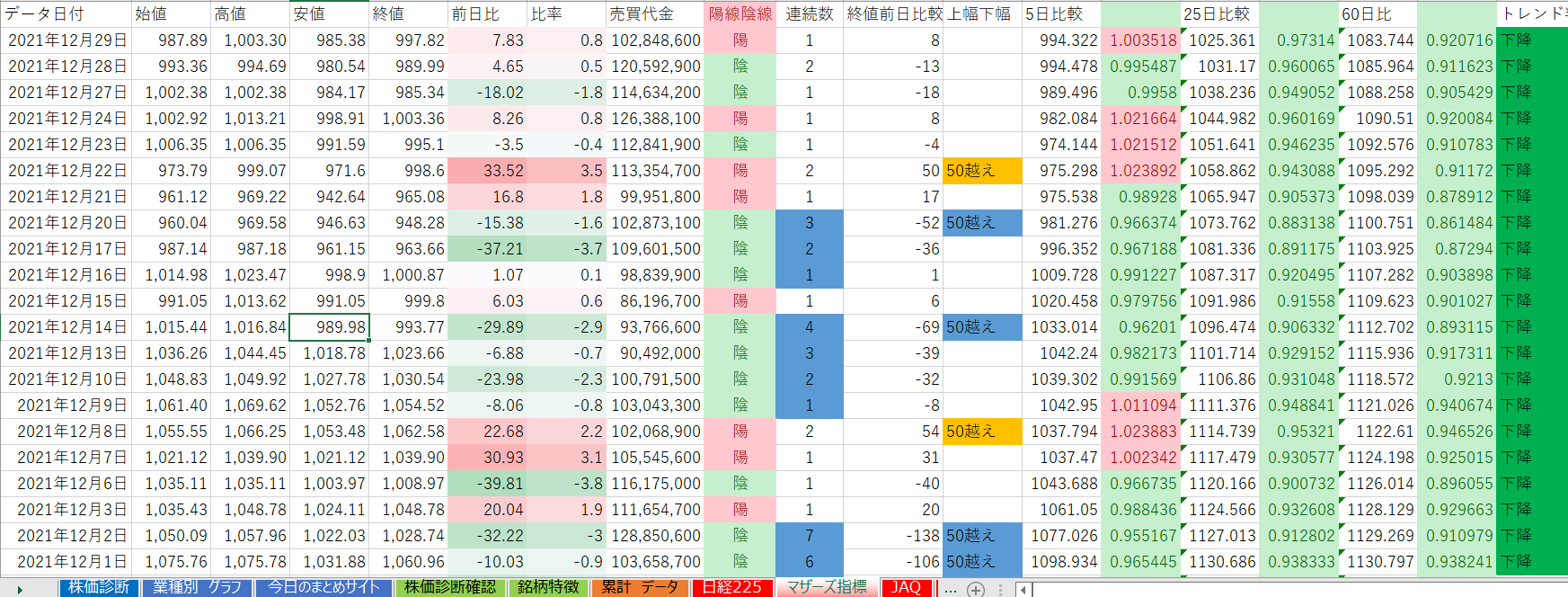 12月はここまで、日別東証全体の値上がり銘柄率平均 52%(前日比₊1%)