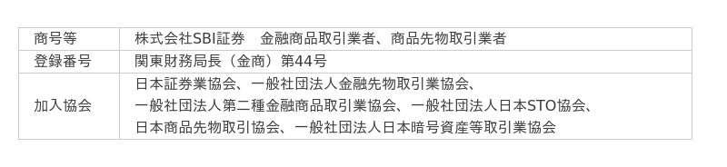 SBI証券で取り扱っている商品等へのご投資には、商品毎に所定の手数料や必要経費等をご負担いただく場合があります。また、各商品等は価格の変動等により損失が生じるおそれがあります(信用取引、先物・オプション取引、商品先物取引、外国為替保証金取引、取引所CFD(くりっく株365)では差し入れた保証金・証拠金(元本)を上回る損失が生じるおそれがあります)。各商品等への投資に際してご負担いただく手数料等及びリスクは商品毎に異なりますので、詳細につきましては、SBI証券WEBサイトの当該商品等のページ、金融商品取引法等に係る表示又は契約締結前交付書面等をご確認ください。