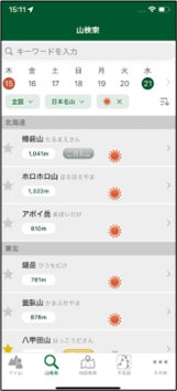 それぞれのソート機能は複数選択ができ、ソート結果に表示された山を標高の高い順、標高の低い順、山名順で並べ替えられるほか、日付指定も可能なため、希望に合った山を見つけることができます。