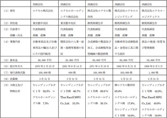 エクセル・グループは、当社が 2024 年 12 月に全株式を取得し、当社グループに参加いたしました。高い設計(形 状)自由度、性質の異なる樹脂材料の一体成形を特徴とする3次元ブロー成型をコア技術として、主に自動車部品ダ クト等の樹脂成型品の開発・製造を行っております。 本合併は、エクセル・グループのバックオフィスサポート機能であるエクセルホールディングス株式会社、販売・ 調達・海外サポート機能であるエクセル株式会社、製造を担う株式会社エクセル製作所を含めたエクエル国内5社全 てを統合するものであります。事業運営を一体化することで、迅速な経営の意思決定を図り、機動的かつ効率的な製 品の供給が可能となります。また、経営資源を一元化することで効率的な活用が可能となるため、当社企業グループ の価値向上にも寄与するものと判断いたしました。