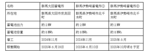 当社は、系統用蓄電所事業の参入に向け、2025年6月10日付で群馬県伊勢崎市における系統用蓄電所の商業運転を開始しておりましたが、続いて第二弾として、群馬県太田市における系統用蓄電所の商業運転も開始いたしましたのでお知らせいたします。