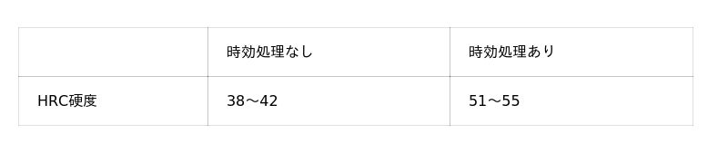 一般的なマルエージング鋼用の時効処理を施せば、HRC50以上の硬度も達成できます。