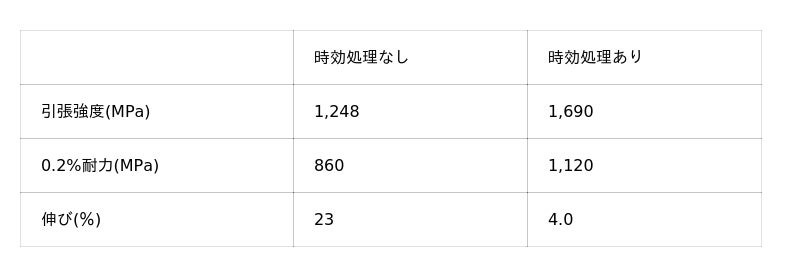 時効処理後の引張強度も1,950MPa以下に抑えているため、輸出規制についても規制対象外です。