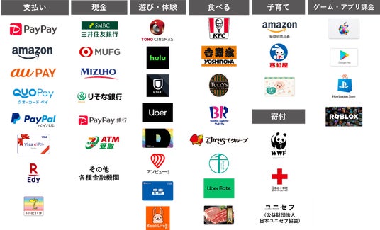 サービス開始当初は、PayPayマネーライトやAmazonギフトカードなどのデジタルマネー、および各種金融機関による現金受取を想定しています。