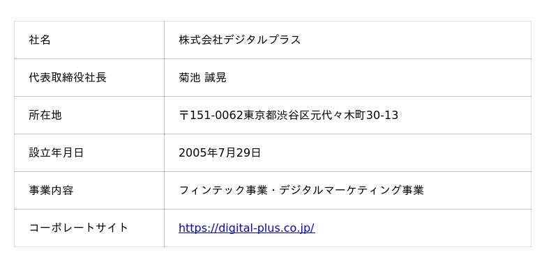 株式会社デジタルプラス(代表取締役社長:菊池 誠晃、本社:東京都渋谷区、東証グロース市場:証券コード3691)の子会社である、株式会社デジタルフィンテック(代表取締役社長:菊池 誠晃、本社:北海道札幌市)が北海道財務局で進めている第二種資金移動業者の登録が完了いたしましたことをご報告いたします。