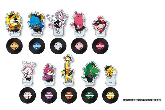 「TOPPA!!! BASE AKIBA」限定の描き下ろしイラストを使用したアクリルスタンドです。レコードをモチーフとした台座とキャラクターを組み合わせたスタンドで、10種類のキャラクターのうち、