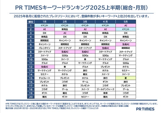 <キーワードランキング>上半期総合は1位:「イベント」、2位:「AI」。5月単月では「AI」が1位に