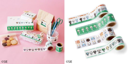 トロを中心にクロ、ソラ、リッキーやピエールなど、『どこでもいっしょ』に登場するキャラクター(通称ポケピ)たちがデザインされた養生テープです。3Dイラストやドット絵など、いろんなテイストを楽しむことができます。デザインは〈トロ・クロ・ソラ〉〈トロづくし〉〈トロたちのお顔〉〈ポケピ集合〉の4種類。はさみを使わずに手で簡単にカットできるのもポイントです。