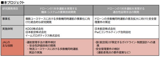 人口減少・高齢化を背景に、さまざまな社会課題の解決のため、物流やインフラ点検などの領域において更なるドローンの利活用が期待される中、事業性をもって実用化を目指すべく、操縦者一人が複数機を同時運航し効率性を高める「多数機同時運航」の実施、および、運航に必要な運航管理システムなどの開発が進められています。