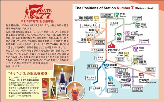名古屋鉄道は、令和7年7月7日に、日付が「7・7・7」と並ぶことを記念して、「『7・7・7』記念乗車券」を発売します。