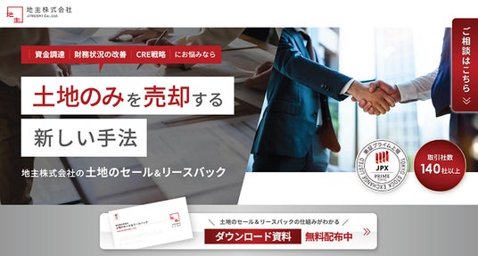 この度、当社は、CRE戦略の推進等を検討する企業に向けて、「土地のセール&リースバック」のサービスサイトを公開しましたので、下記の通りお知らせいたします。