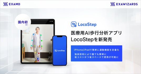 株式会社エクサウィザーズ(東京都港区、代表取締役社長CEO:春田 真)のグループ会社である株式会社ExaMD(東京都港区、代表取締役:羽間 康至、以下ExaMD)は、医療機関やリハビリテーション施設向けに、本分野にて国内初*1となる医療用AI歩行分析アプリ「LocoStep」(ロコステップ)を開発し、2025年7月1日(火)より発売開始したことをお知らせします。