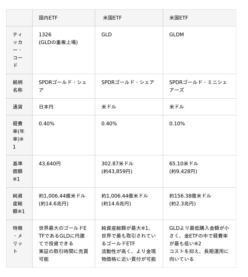 ※対象3銘柄は、いずれも金価格に連動するETF。