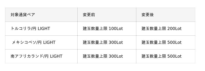 この状況を踏まえ、今般、「みんなのFX」における一部取扱い通貨ペアの建玉上限を、以下のとおり引き上げることといたしました。