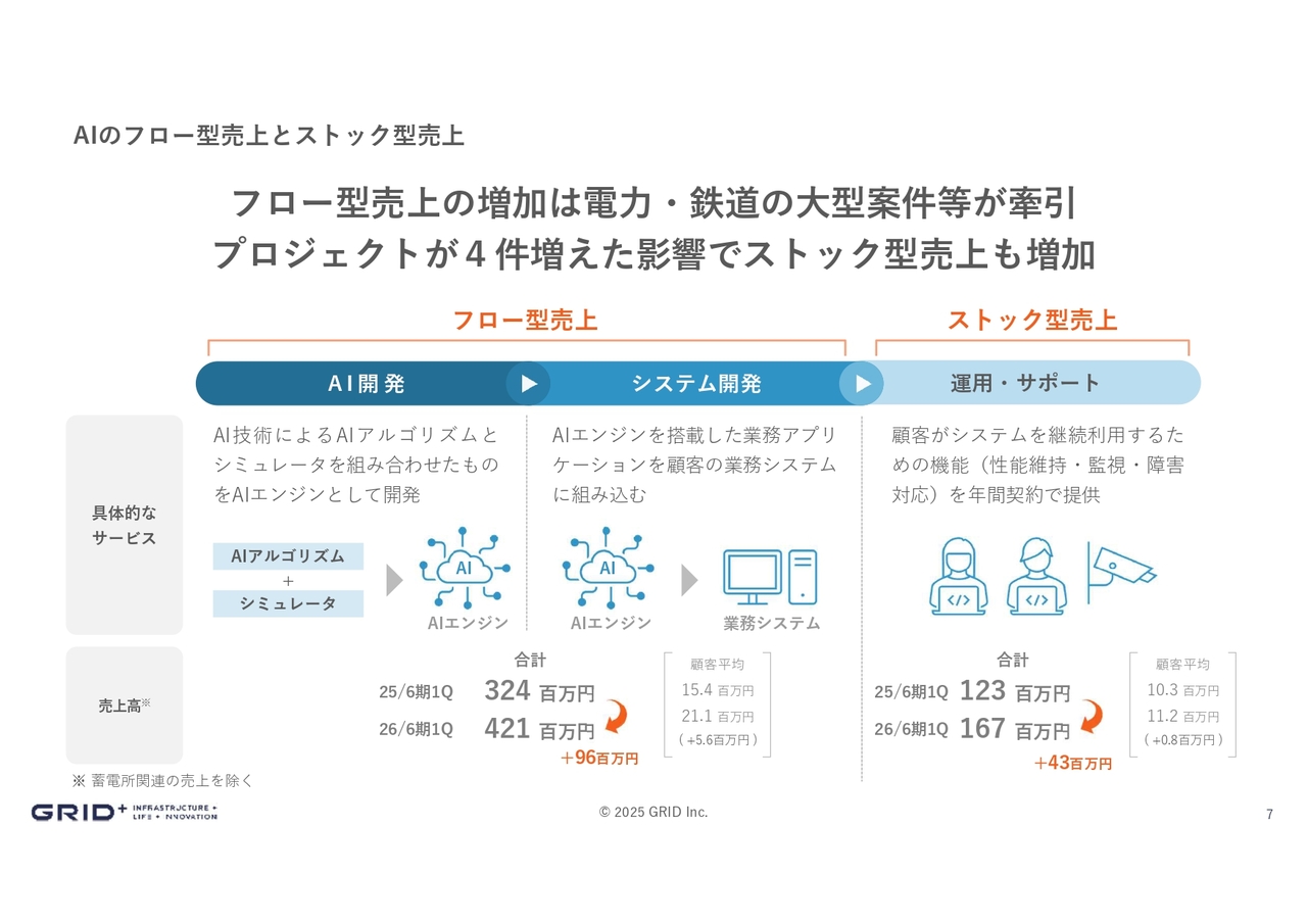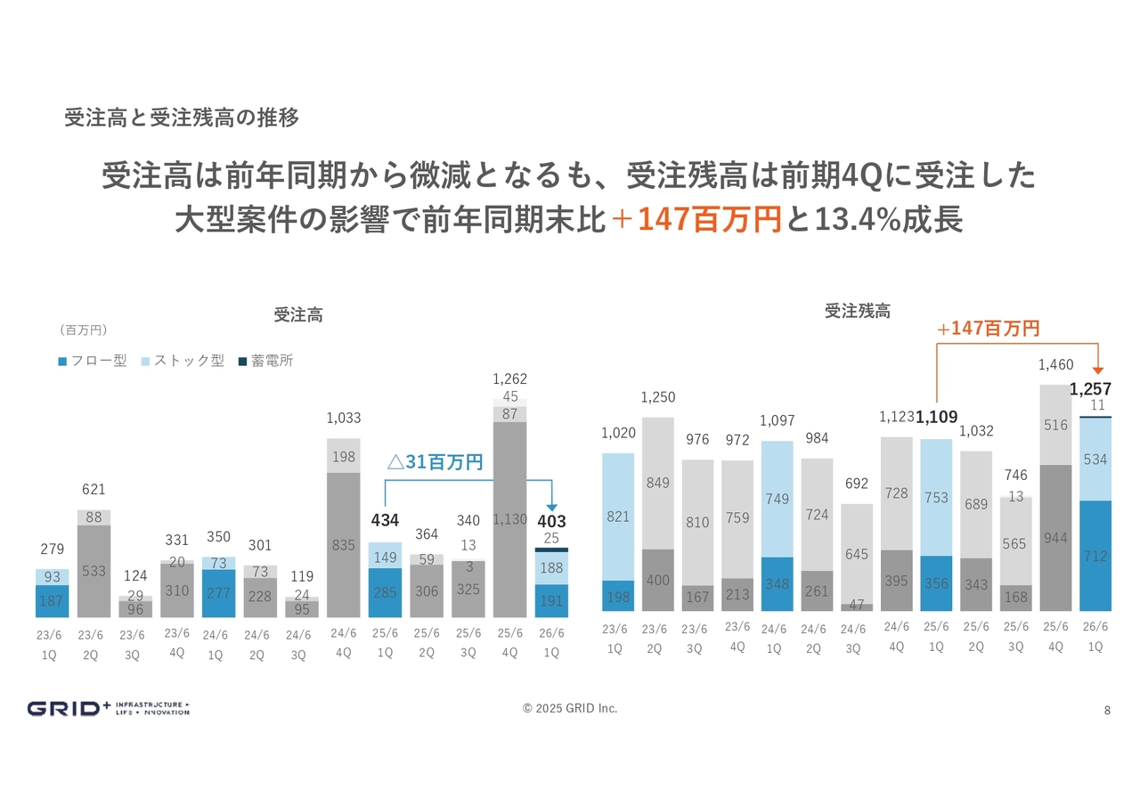 フロー型売上も電力、鉄道の大型案件の牽引等により前年同四半期から1億円超増加しています。