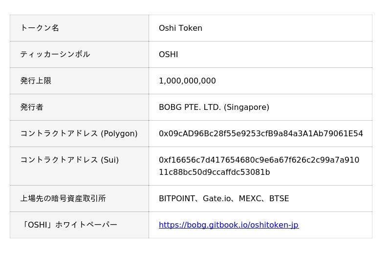 「OSHI」ホワイトペーパー:https://bobg.gitbook.io/oshitoken-jp/roadmap