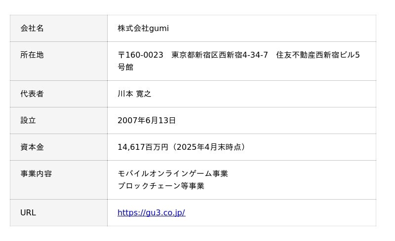 ◼︎会社概要:株式会社gumi