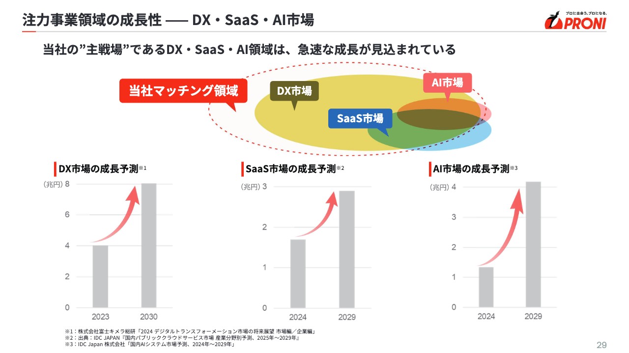 柴田:DX、AI、SaaSの市場は、今後日本国内でも必ず伸びていく市場です。さらにその中でも、私たちがターゲットとしている中小企業のうち8割の企業が「DX化したいけれどできていない」という状況であることが挙げられます。
