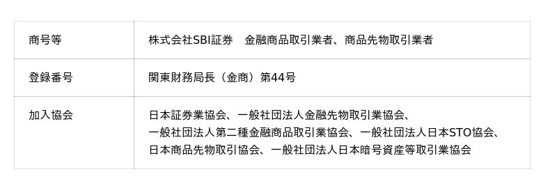 SBI証券で取り扱っている商品等へのご投資には、商品毎に所定の手数料や必要経費等をご負担いただく場合があります。また、各商品等は価格の変動等により損失が生じるおそれがあります(信用取引、先物・オプション取引、商品先物取引、外国為替保証金取引、取引所CFD(くりっく株365)、店頭CFD取引(SBI CFD)では差し入れた保証金・証拠金(元本)を上回る損失が生じるおそれがあります)。各商品等への投資に際してご負担いただく手数料等及びリスクは商品毎に異なりますので、詳細につきましては、SBI証券WEBサイトの当該商品等のページ、金融商品取引法等に係る表示又は契約締結前交付書面等をご確認ください。