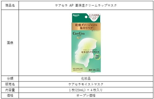 ロート製薬株式会社(本社:大阪市、社長:瀬木英俊)は、乾燥肌・敏感肌に寄り添うスキンケアブランド「ケアセラ」から、肌にうるおいを与えて乾燥ダメージから守る集中うるおいリペアケアとして、「ケアセラ AP 高保湿クリームラップマスク」(販売名:ケアセラモイストマスク)を、2026年1月19日(月)より順次、EC(Amazon、楽天、ロハコ、@コスメ、ロート通販)にて先行発売いたします。