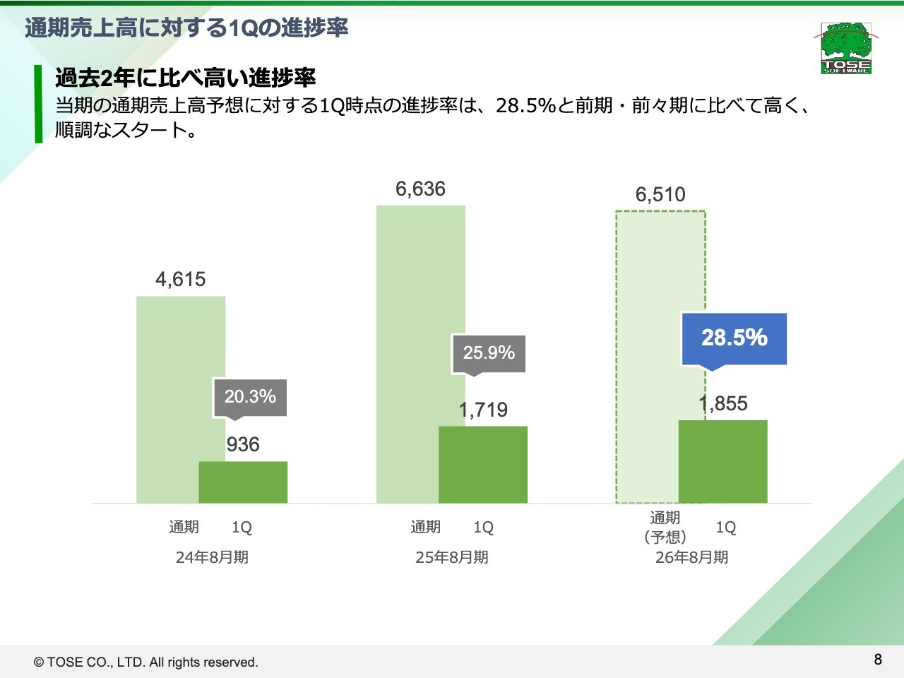 Q:2026年8月期第1四半期の業績は通期業績予想に対し高い進捗率でしたが、通期業績予想は上方修正されないのでしょうか?