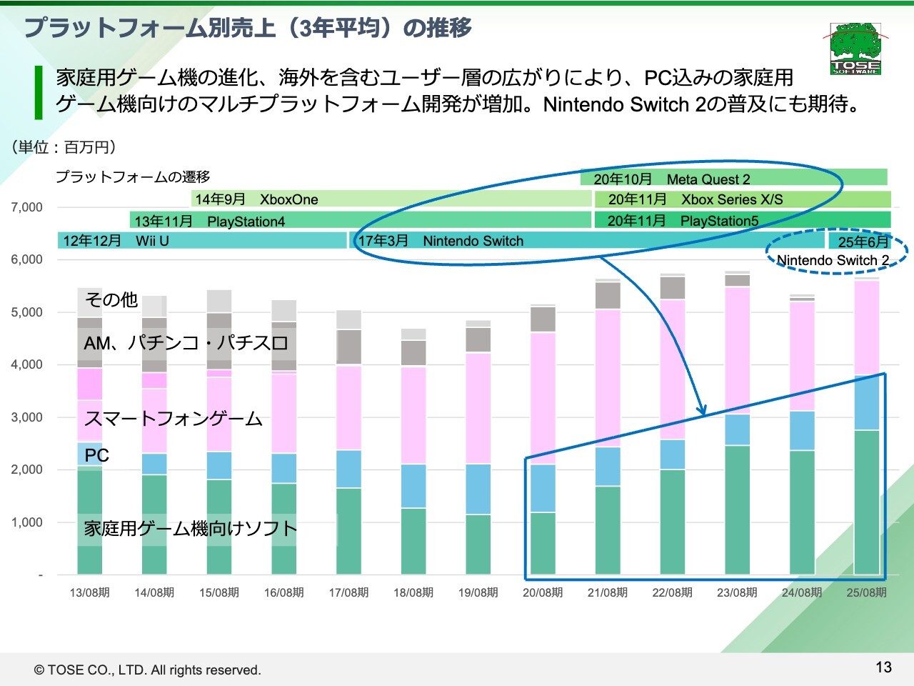 2024年8月期は次世代ゲーム機発表前の端境期であり、加速する市場の変化により、複数のゲーム関連会社において開発中または開発したタイトルの評価替えがされるなど、ゲーム開発の⽅針や考え⽅の転換が⾒られました。