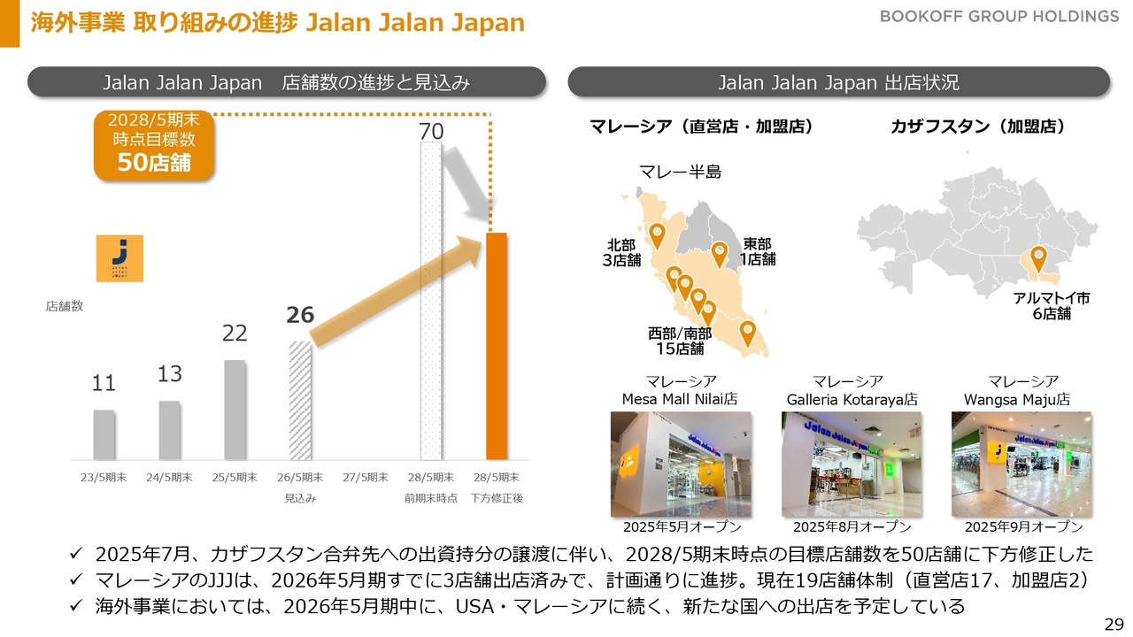 マレーシアの「Jalan Jalan Japan」は引き続き出店を進めており、新店舗ではしっかりと売上を確保できています。
