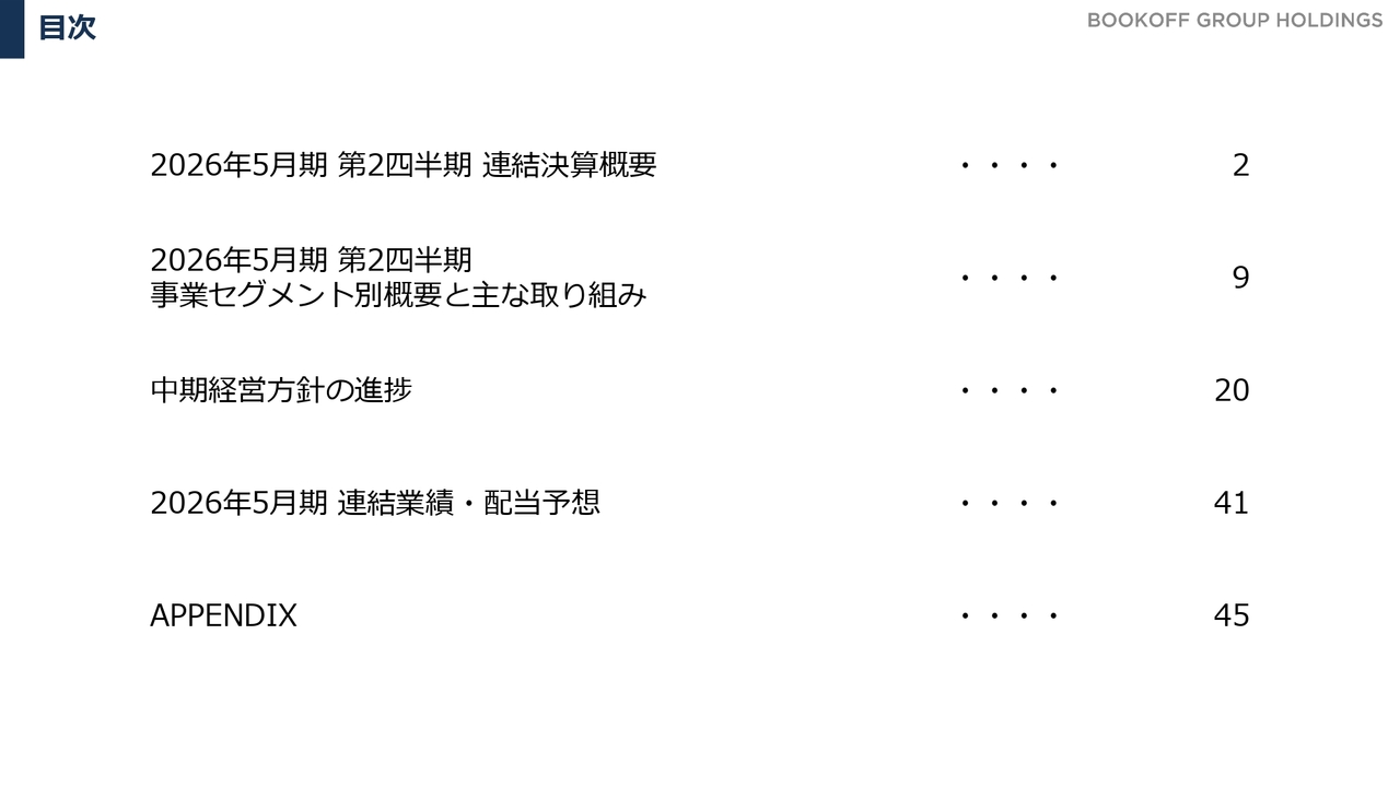 本日の決算説明会では、当社グループの2026年5月期第2四半期の決算概要をお伝えした後、中期経営方針の進捗内容についてご説明します。