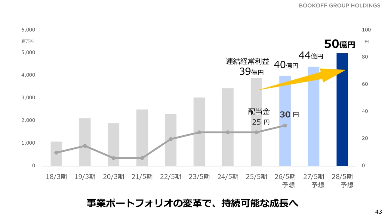 事業の成長と市場の活性化に向けた取り組みを通じて、まずは2028年5月期の業績目標に向けて進んでいく方針です。