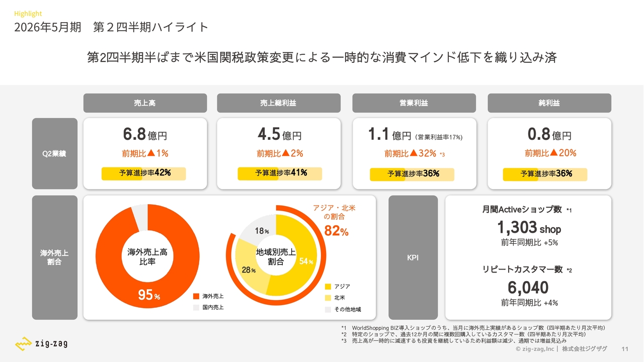 ジグザグ、売上高は前年とほぼ同水準、先行投資を継続しつつ安定収益を確保 世界にファンをつくる越境ECを推進