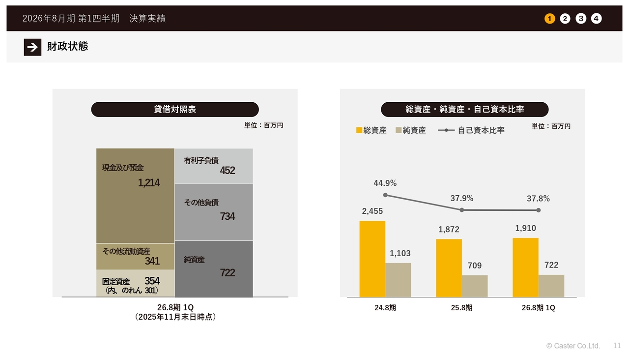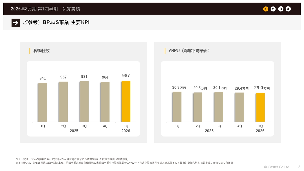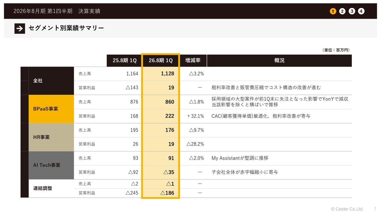 中川祥太氏:株式会社キャスター代表取締役の中川です。本日は2026年8月期第1四半期の決算説明を行います。よろしくお願いします。