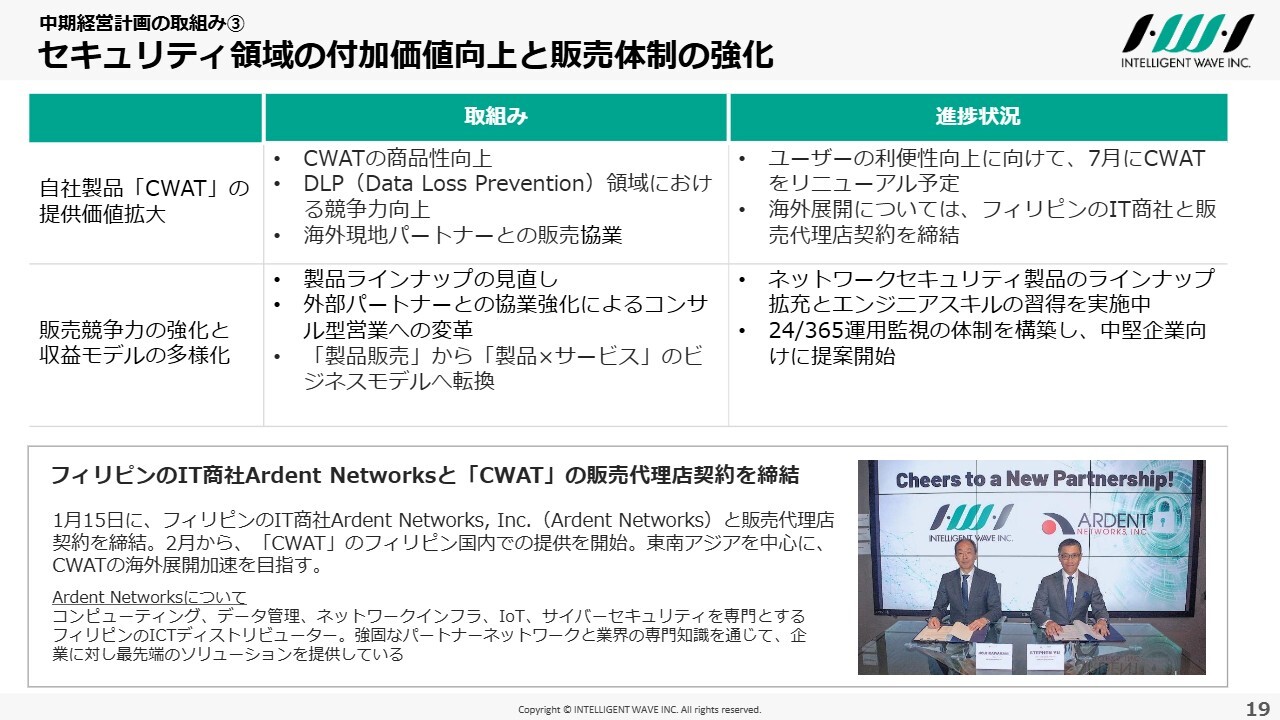 セキュリティ領域の付加価値向上と販売体制の強化