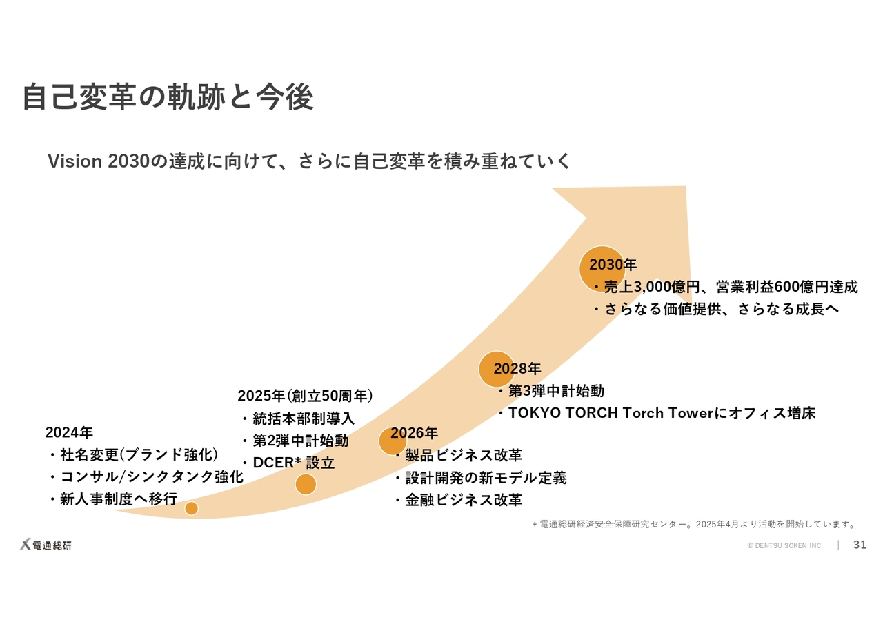 2026年は、さきほど説明した3点の重点施策を全社を挙げて実施し、2027年や2030年に向けた成⻑に⼀定の⽬途を付けたいと考えています。