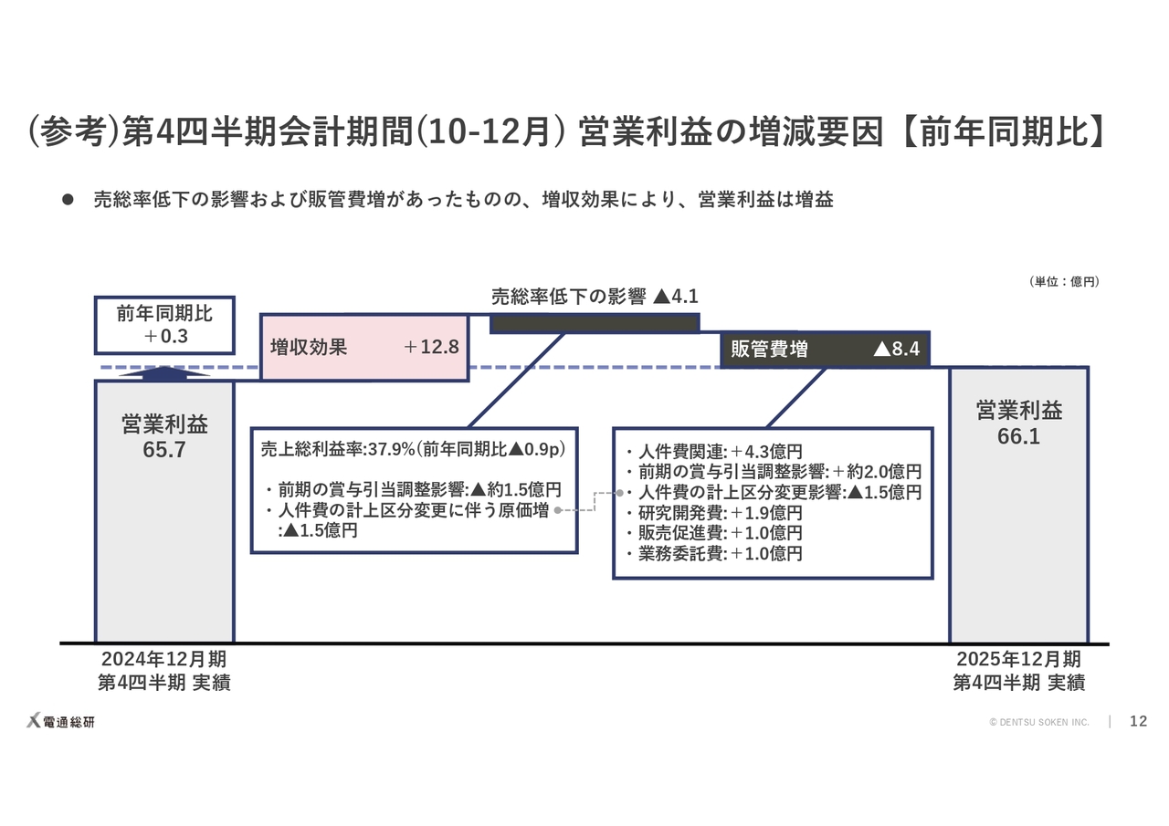 前年第4四半期の営業利益65億7,000万円に対し、当第4四半期は66億1,000万円と、0.3億円の増益となりました。