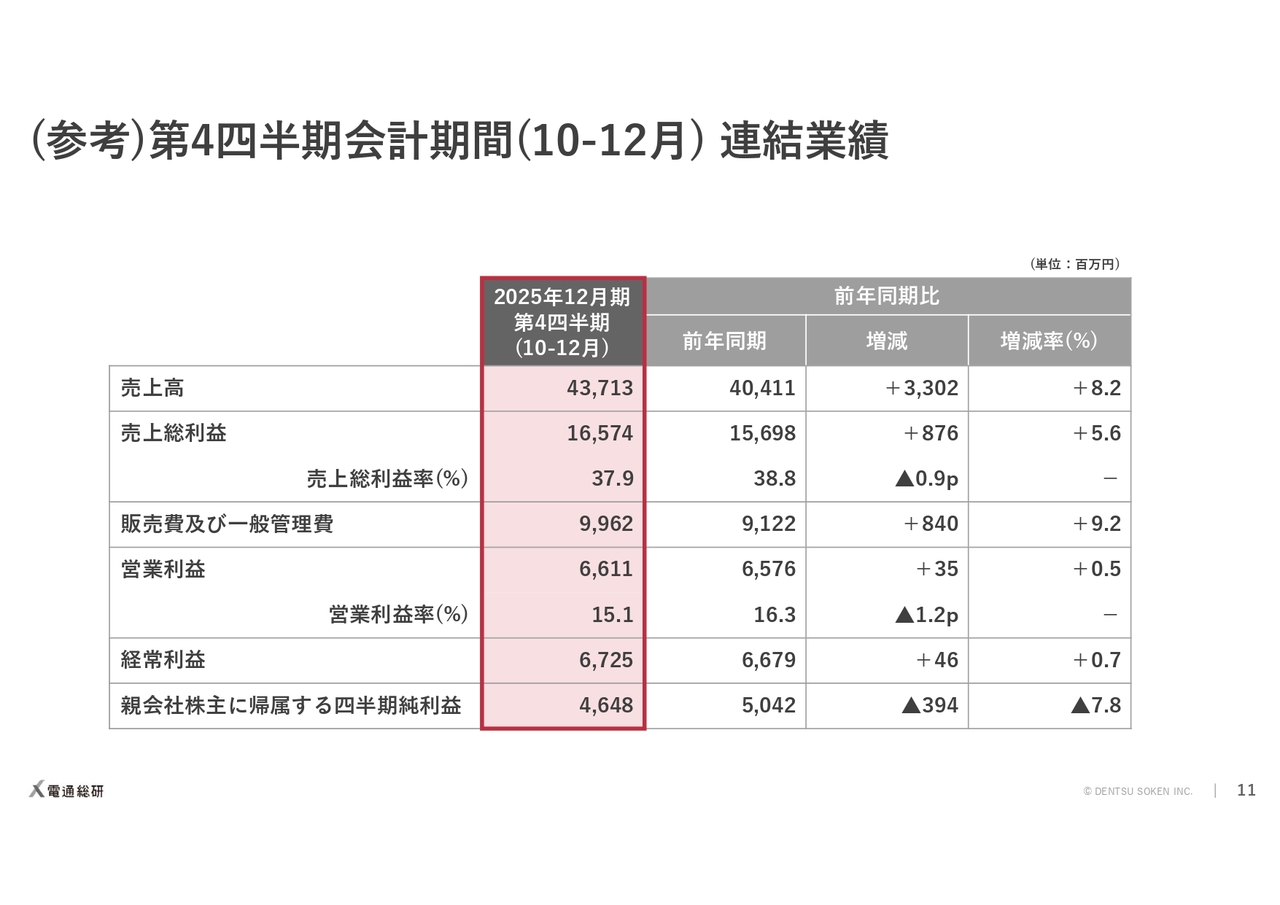(参考)第4四半期会計期間(10-12⽉) 連結業績